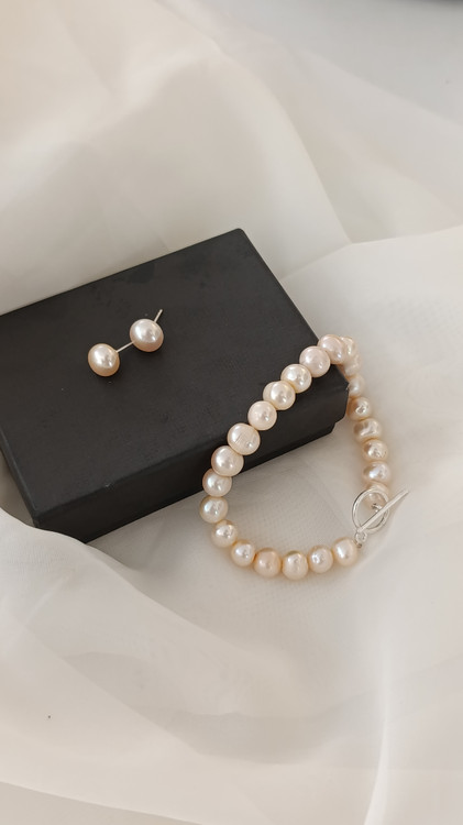مروارید پرورشی رنگ گلبهی سایز 8 میلیمتر کیفیت خوب قفل نقره 925 مدل تی