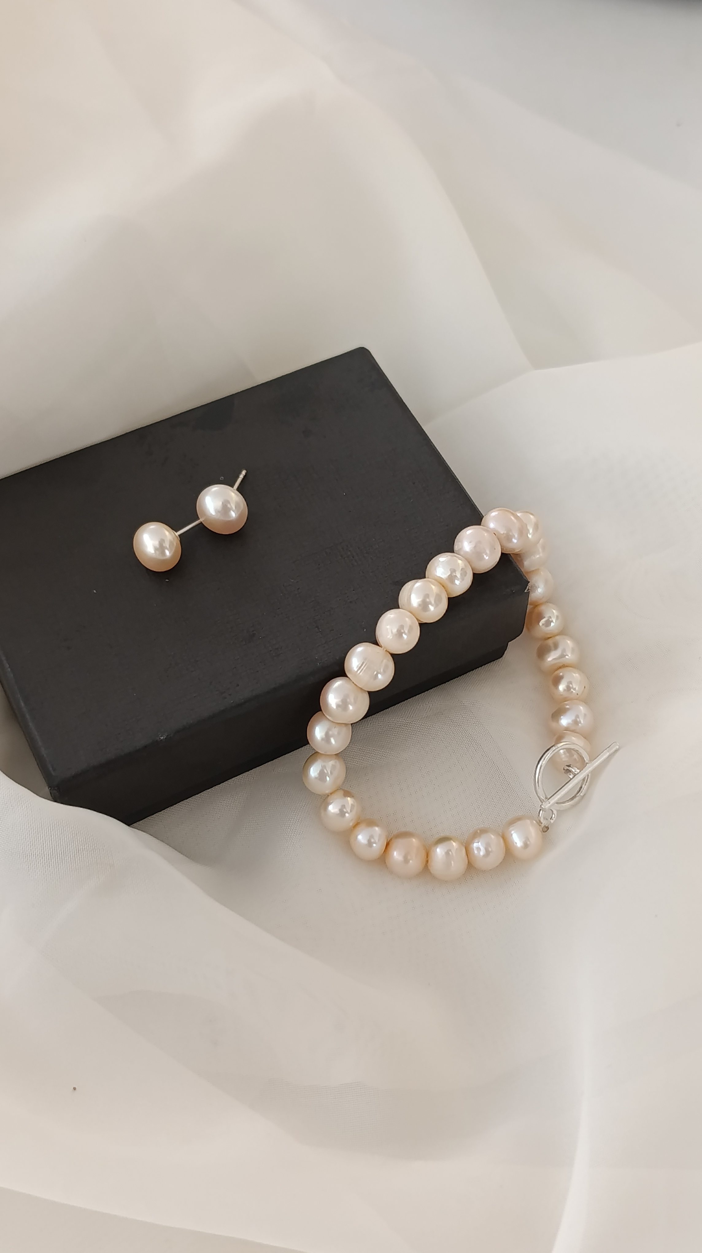مروارید پرورشی رنگ گلبهی سایز 8 میلیمتر کیفیت خوب قفل نقره 925 مدل تی