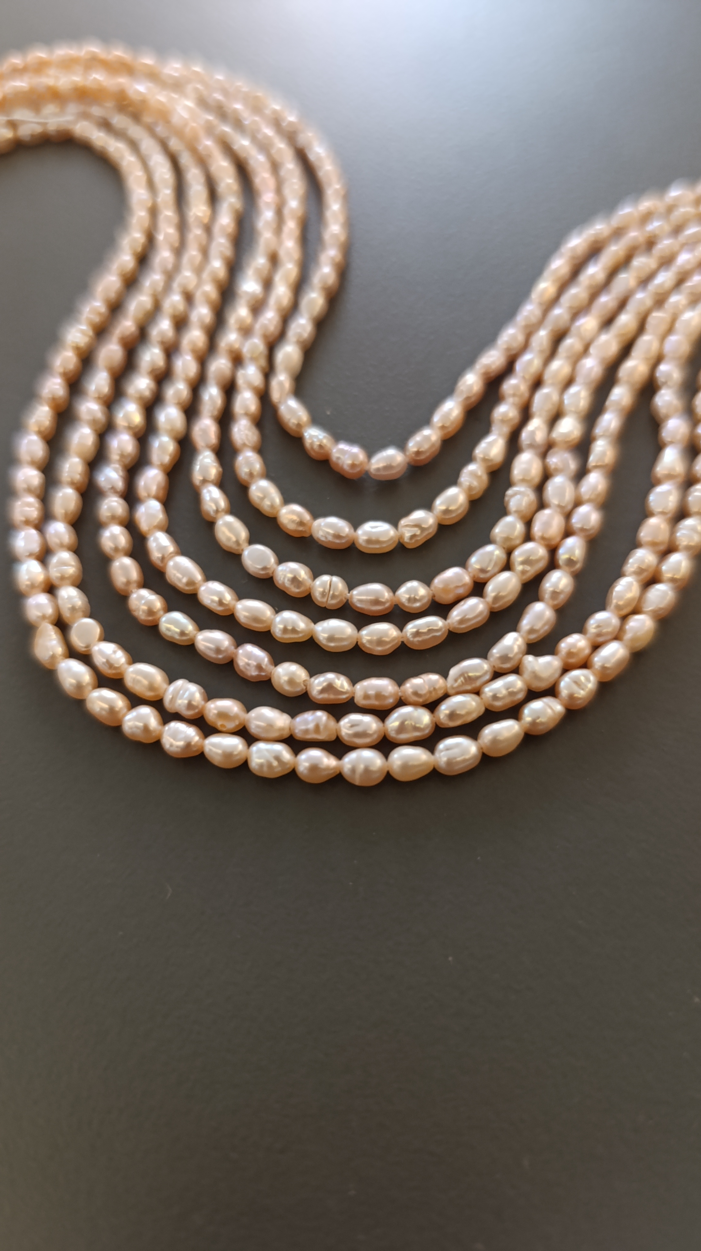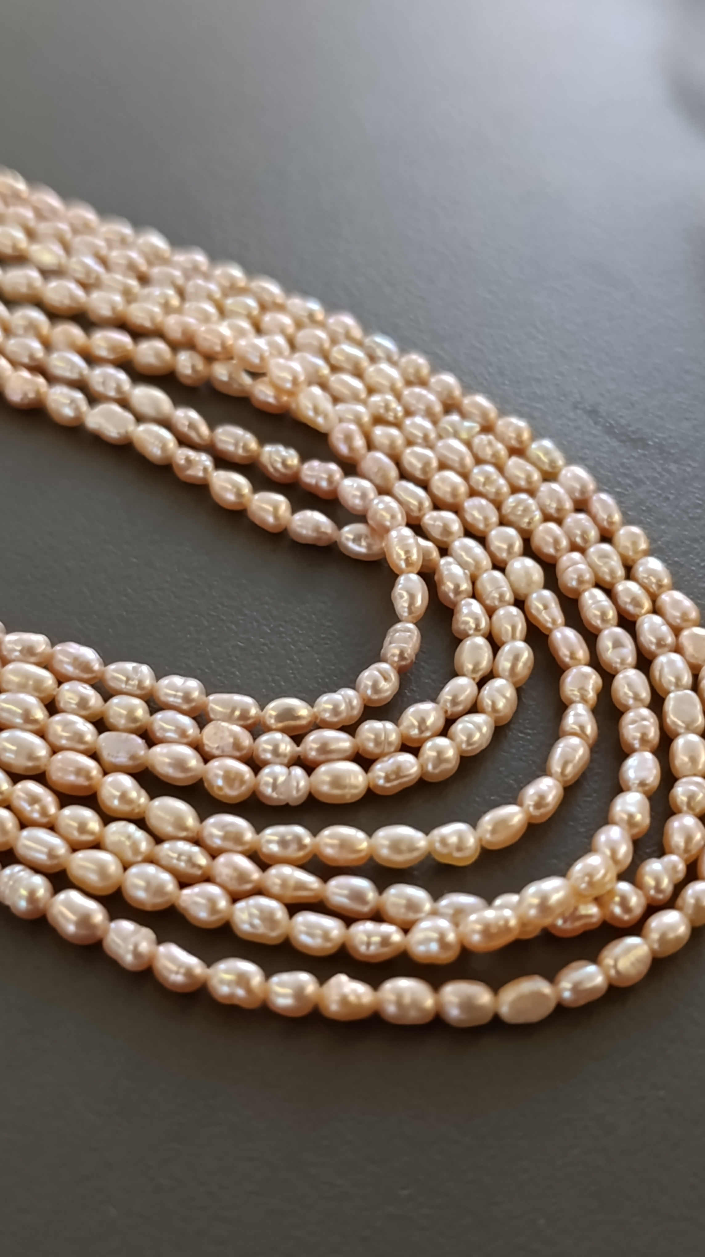خرید مروارید پرورشی مدل گندمی سایز 4 میلیمتر رنگ گلبهی بسیار درخشان ارسال فوری
