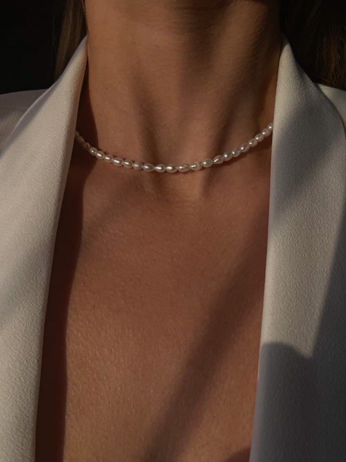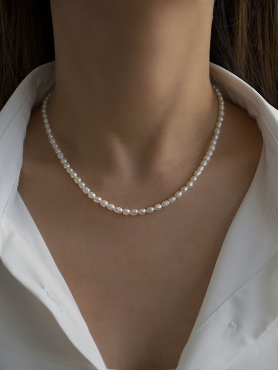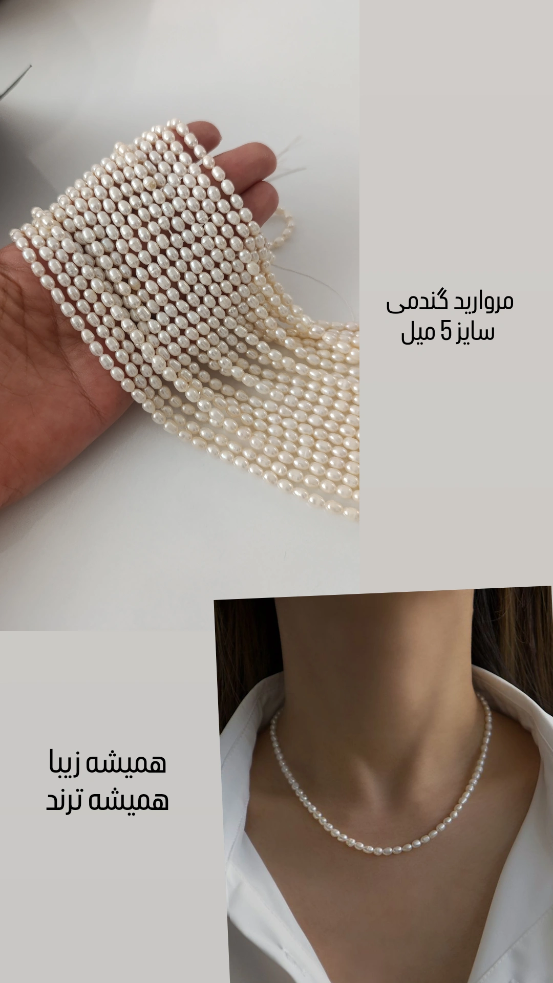 خرید گردنبند مروارید پرورشی مدل گندمی رنگ سفید درخشان